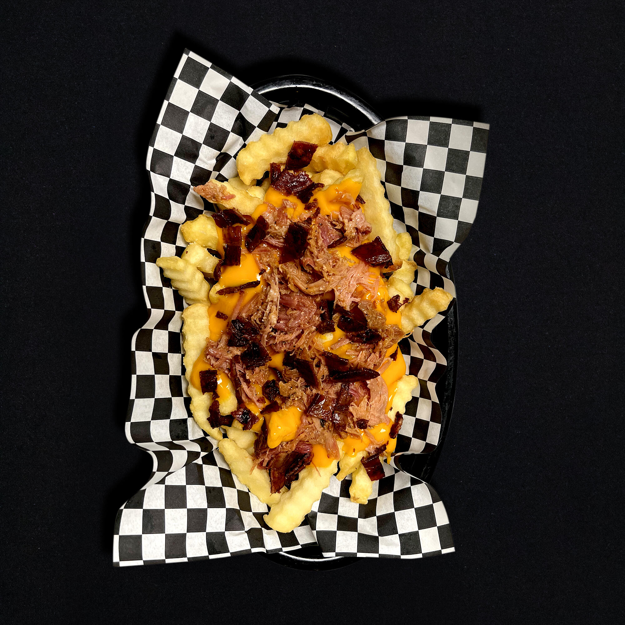 like the ones of a lifetime but with Pulled Pork, Cheddar Cheese, Bacon and tomato.
